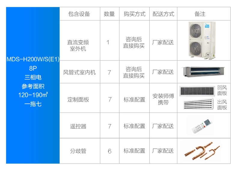 美的 一拖七變頻一級(jí)能效 多聯(lián)風(fēng)管機(jī) 8匹 家用中央空調(diào) MDS-H200W/S(E1)