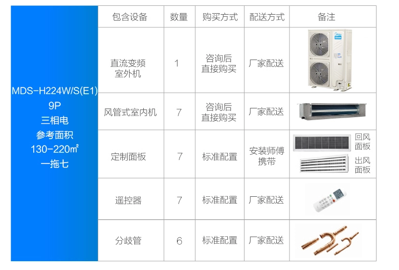 美的 一拖七變頻一級(jí)能效 多聯(lián)風(fēng)管機(jī) 9匹 家用中央空調(diào) MDS-H224W/S(E1)